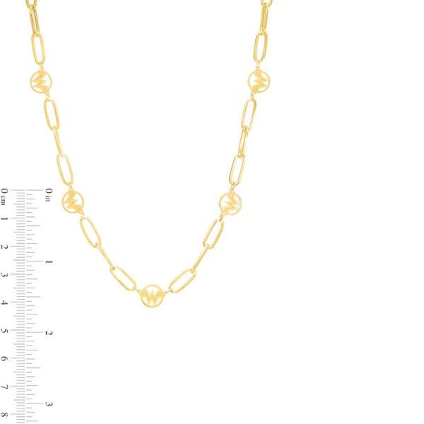 - This 18.25-inch paperclip chain necklace secures with a lobster claw clasp.